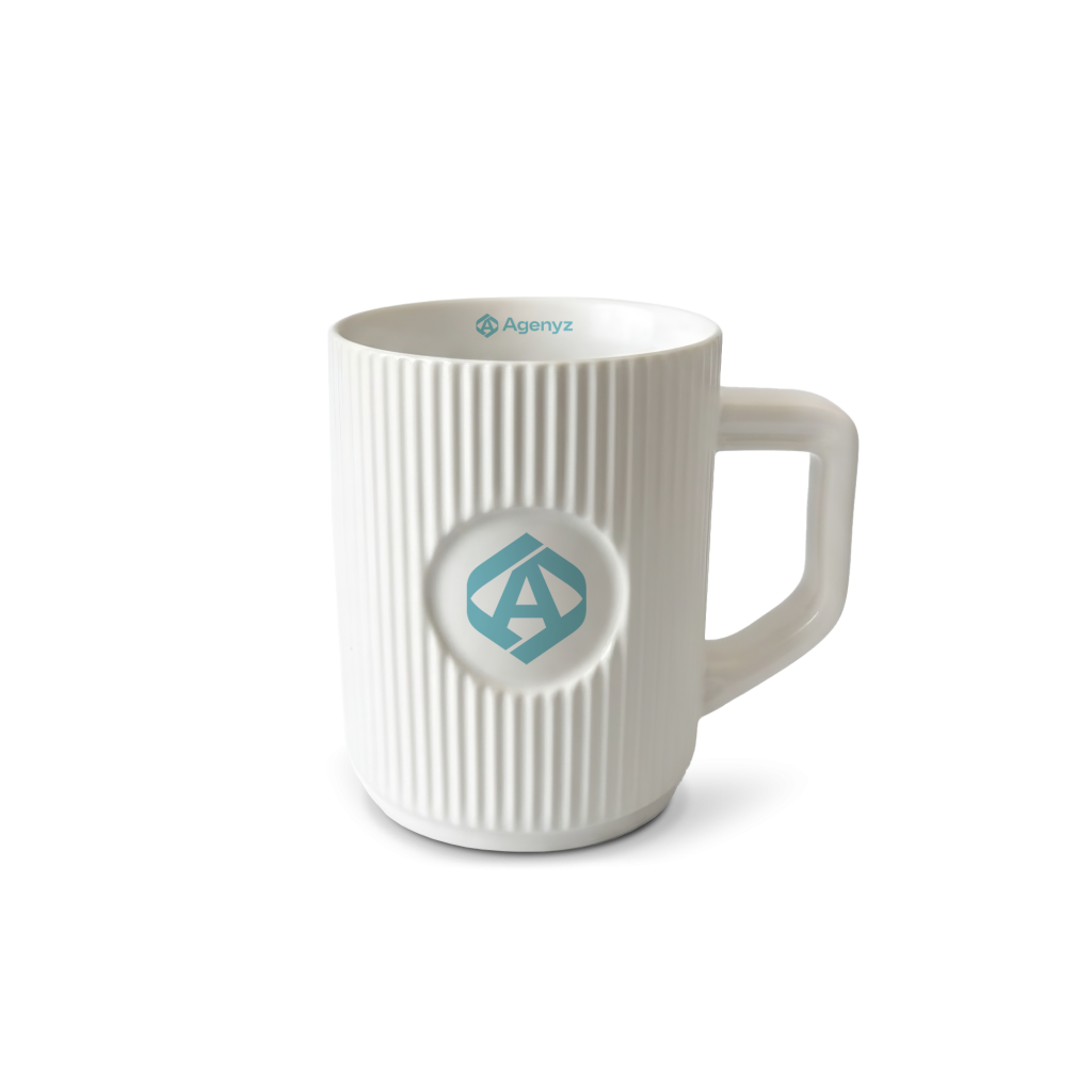 The Agenyz® Mug embodies simplicity, quality, and everyday functionality. Crafted from high-grade porcelain, it offers both elegance and durability. The smooth matte surface provides a soft tactile feel and modern look, while the logo in turquoise, applied by high-precision printing, gives a vibrant yet sophisticated accent.